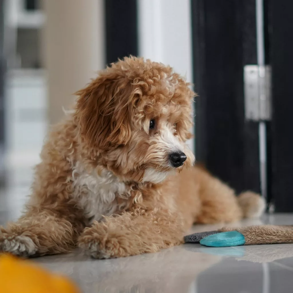 A Mini Goldendoodle typically grows to be about 18 to 22 inches tall at the shoulder and weighs between 25 to 45 pounds when fully grown. Their size can vary depending on the specific genetics of the Mini Goldendoodle and Mini Poodle parents, but most fall comfortably within this range. They’re a great choice for families who want a moderately sized dog with a big personality in a smaller, more manageable package.